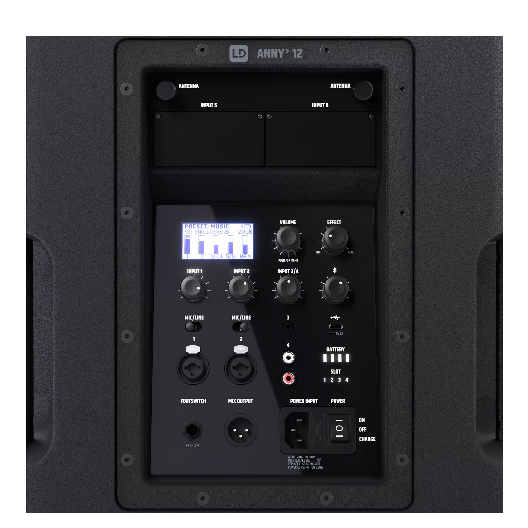 - 2 × mottakermodul-spor for ettermontering av ANNY trådløse mikrofoner