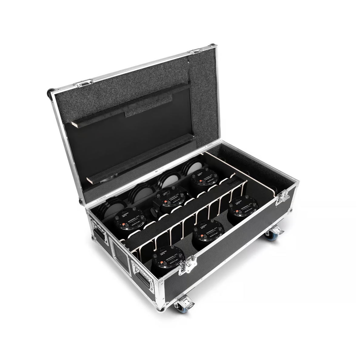 - Strømforsyning + seksdelt kabel for direkte lading av opptil 6 Cameo DROP® B4 i kofferten